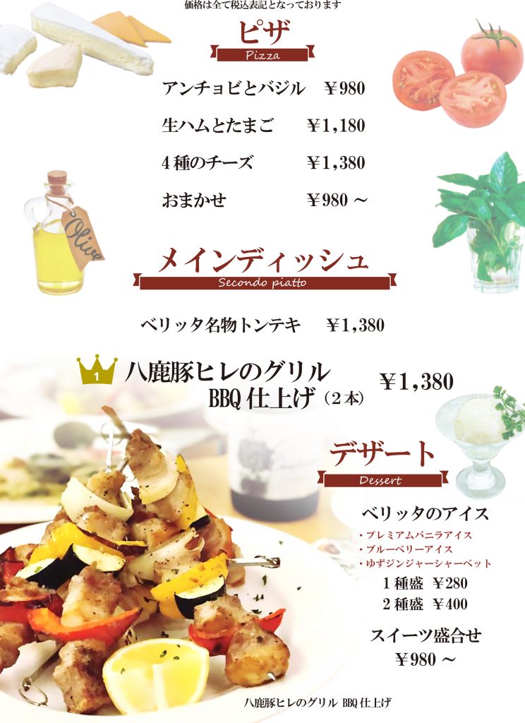 メニューブック制作 – カフェレストラン ベリッタ様