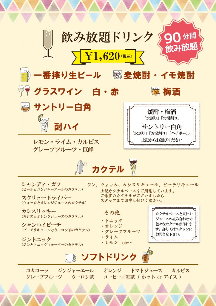 ランチメニューとは違い、食材のイメージをちりばめたメニューの文字がスッと目に入るようなデザインに仕上げています。